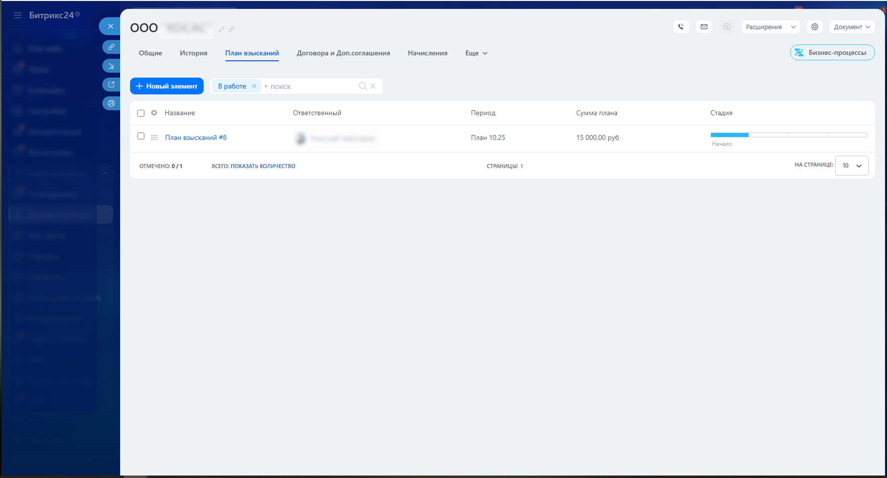 План взысканий. При наличии просрочки автоматически активируется план взысканий, который отображается в карточке.
