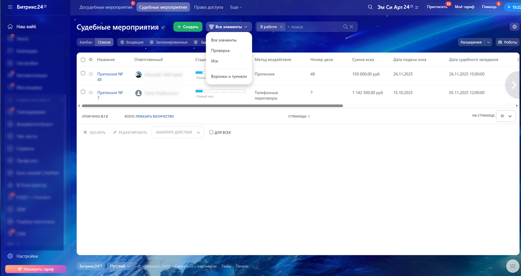 2. Судебные мероприятия.