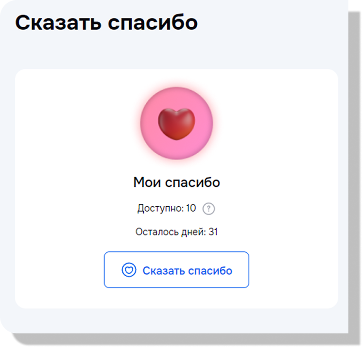 «Спасибо» — это простой способ выразить благодарность коллеге за помощь. «Спасибо» имеет свой валютный вес, определённое количество и счетчик обнуления. Например, при настройке 3 спасибо в месяц, по истечению срока счетчик обнулиться и вы получите снова возможность направлять «Спасибо»