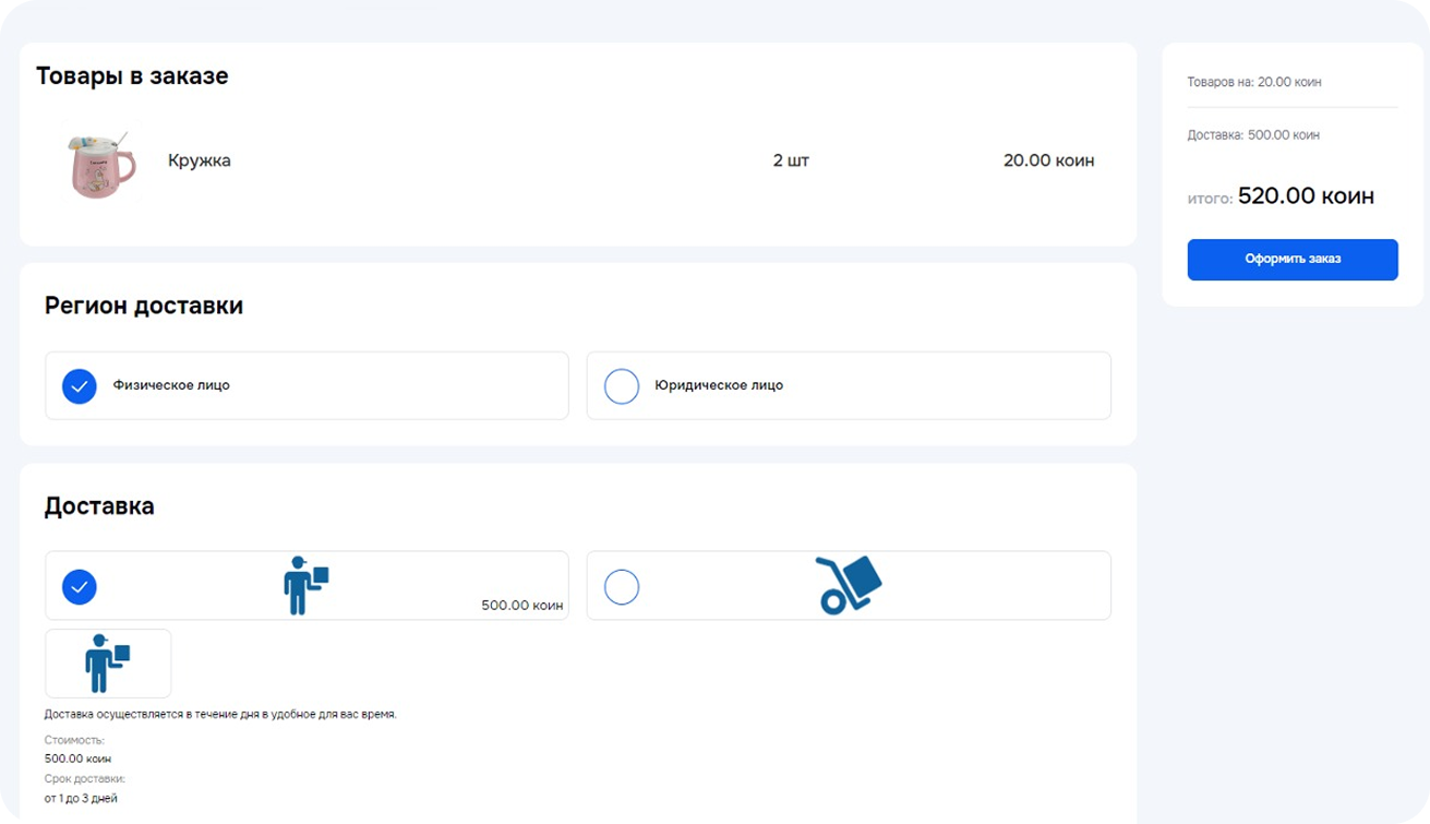 Коины — виртуальная валюта, которую сотрудники зарабатывают за выполнение определённых действий. При достижении нужного количества коинов сотрудник может обменивать их на товары или услуги, представленные во внутреннем магазине.